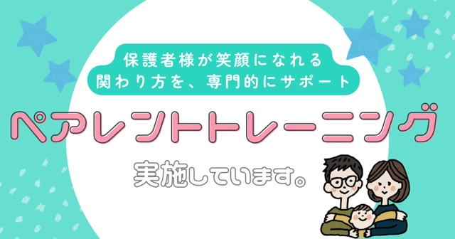 - 応用行動分析(ABA)を取り入れたペアレントトレーニングを実施します。