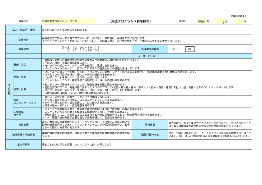 こちらは、はぐみぃープラスで行っている支援プログラムになります。